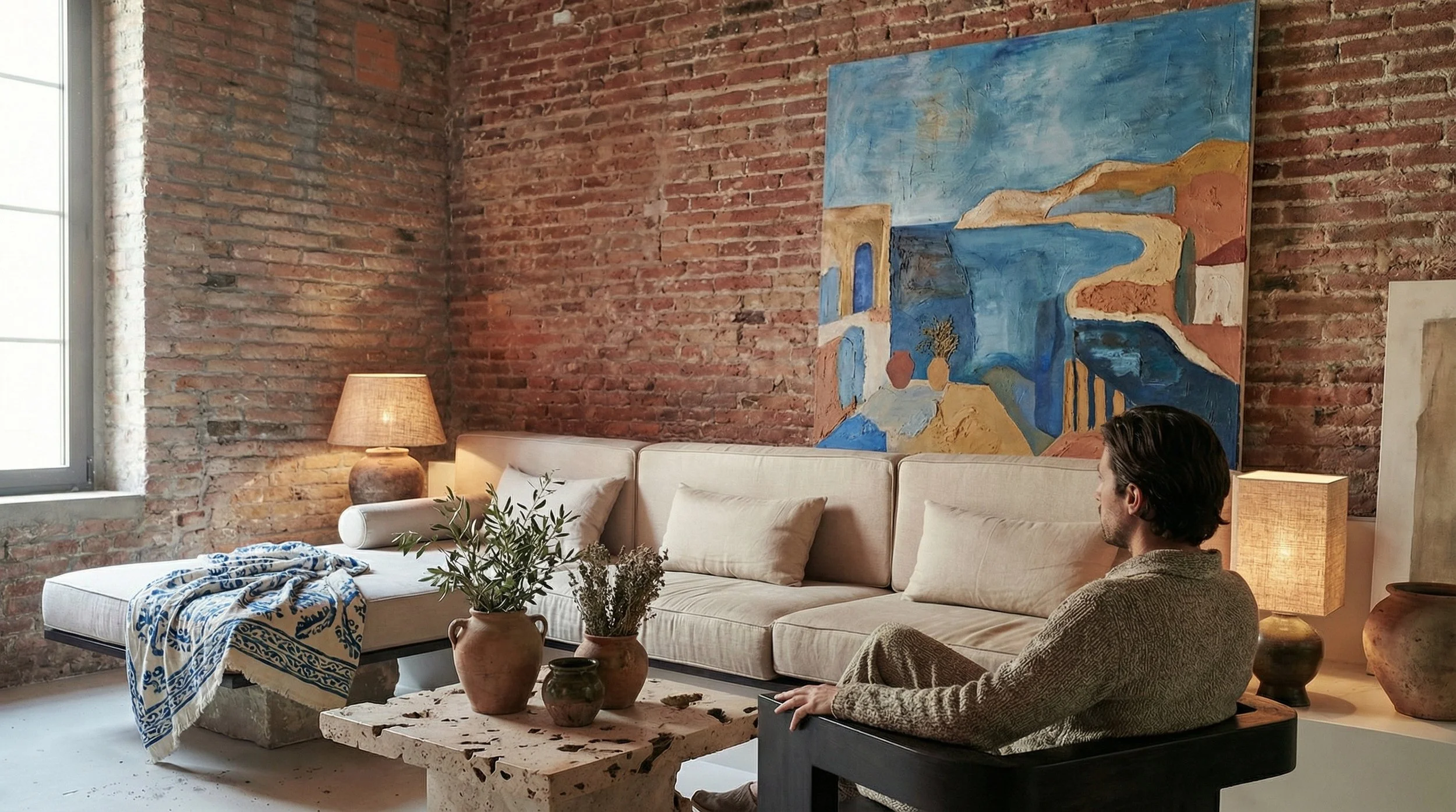 Casa Azul tiene ese aire tranquilo que solo consiguen los espacios que no intentan impresionar a nadie, pero igual lo hacen. La cocina se organiza en dos mesadas enfrentadas, como si estuvieran en un eterno duelo amistoso, permitiendo trabajar de un lado y del otro sin que todo sea un caos. El ladrillo manda en el ambiente; está por todas partes y le da textura, peso y una sensación de estar en un lugar con historia, aunque sea nueva. Entre tanto material sólido aparece la paja, en lámparas, tramas y detalles, suavizando todo y aportando calidez sin volverse rústica de catálogo. El conjunto funciona con una naturalidad casi sospechosa: ladrillo dominante, paja generosa y una cocina pensada para vivirla, no para presumirla. Esta casa se llama Azul, pero en realidad vibra más en tonos tierra que en cualquier otra cosa.
